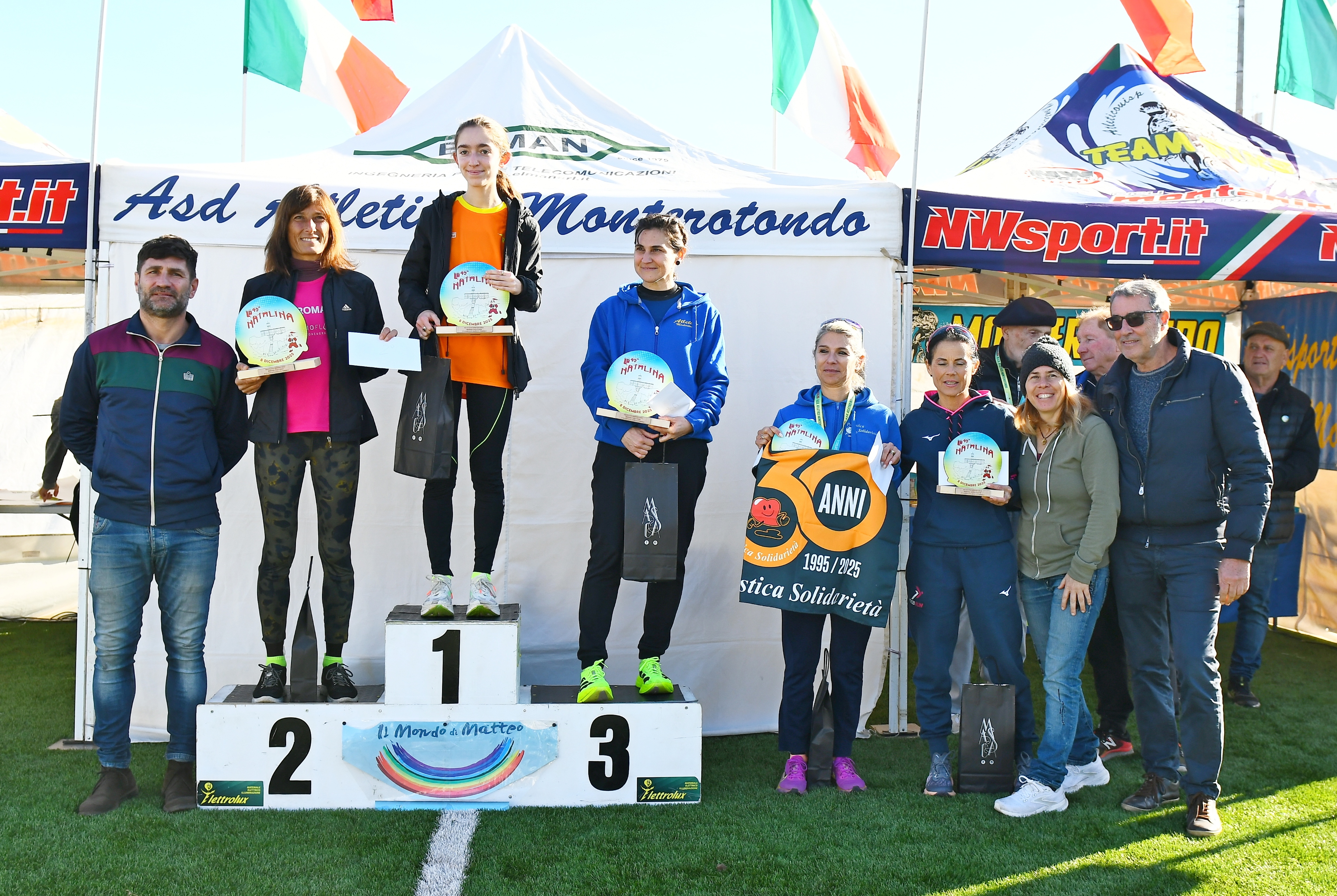 In ambito femminile, va forte l’atleta dell’ACSI Italia Atletica: Anna Bianca Richter, che finisce la gara con il tempo di 38:30. Secondo posto per l’ottima Paola Salvatori (U.S. Roma 83, 38:43), una navigata competitiva sempre nelle prime posizioni. Terzo gradino del podio per l’atleta locale Maura Salvatore (Atletico Monterotondo, 43:25).